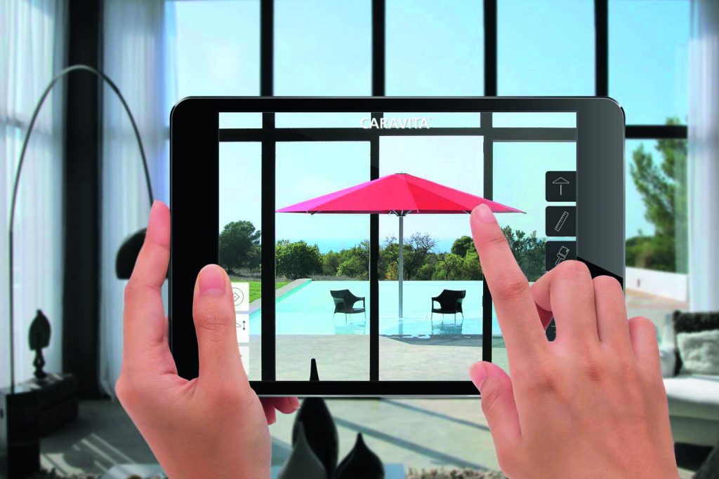 virtuell erscheinen zu lassen, um so die optimale Größe, Form und Farbgebung im Zusammenspiel mit Architektur und Umgebung zu bestimmen. Zur Wahl stehen der Großschirm Big Ben, die Mittelmastschirme Supremo mit Easy-Lift-Balance-System und Samara mit Kurbelmechanik sowie der Entscheidung für eines der vier Modelle gefallen ist, scannt der User den Boden auf der Terrasse, dem Balkon oder im Garten und der Schirm taucht auf dem Screen auf. Jetzt lassen sich per Fingertipp ganz einfach Maße, Gestellfarbe, Tuch, Motorisierung und weitere Extras konfigurieren. Mit der fertigen Konfiguration als PDF können die User beim regionalen Caravita Fachhändler ein unverbindliches Preisangebot anfordern.
