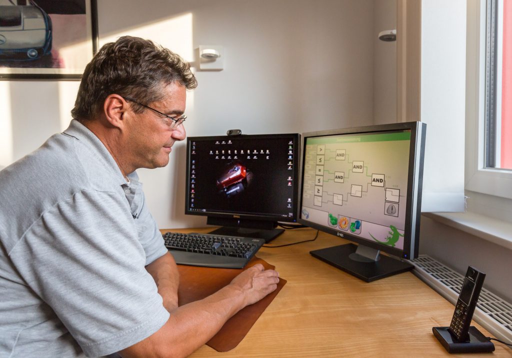 „In den Logiken kann man sich austoben“, schwärmt der Entwicklungsingenieur. „Hier kann ich ganz individuell den Tagesablauf, den wir haben, darstellen.“ Mit der Smart-Home-Technik kann er einiges für den Komfort der Familie tun. Diesen Wunsch hat er sich mit dem myGEKKO Slide erfüllt, das Haus „sei Diener der Familie“. Das bestätigt Sabine Santos, ebenfalls Entwicklungsingenieurin. Eine ihrer Lieblingsszenarien greift, wenn es Zeit für den Mittagsschlaf des jüngsten Familienmitglieds ist. Startet sie die entsprechende Regelung, fahren im Kinderzimmer die Rollläden soweit herunter, dass das Sonnenlicht nicht stört, aber noch etwas Licht einfällt. Die Dachfenster sind geschlossen, die Lichter aus. Einem erholsamen Schlaf steht nichts mehr im Weg.