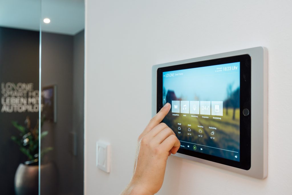 Der vielleicht auffälligste Unterschied zu einem „normalen“ Zuhause erwartet die Besucher im österreichischen Kollerschlag am Eingang des Loxone Showhomes. Ein elektronischer Schlüssel, der NFC Key Fob, öffnet zugleich die Haustür wie auch das Gästezimmer und deaktiviert die Alarmanlage. Über eine Treppe gelangen die Gäste dann durch einen kurzen Flur in eine stilvolle Lounge. Ein großzügiger Koch-, Ess- und Wohnbereich lädt dort zum Verweilen ein. Die smarte Technik läuft derweil – wie im ganzen Haus – dezent im Hintergrund. Licht- und Musikstimmung passen sich automatisch der Tageszeit und den Wünschen der Bewohner an. Die Lamellen der Beschattung reagieren abgestimmt auf den Stand der Sonne und der Heizungsanlage. Aber selbstverständlich können die Bewohner des Showhomes jederzeit in die durchdachten Abläufe manuell eingreifen.